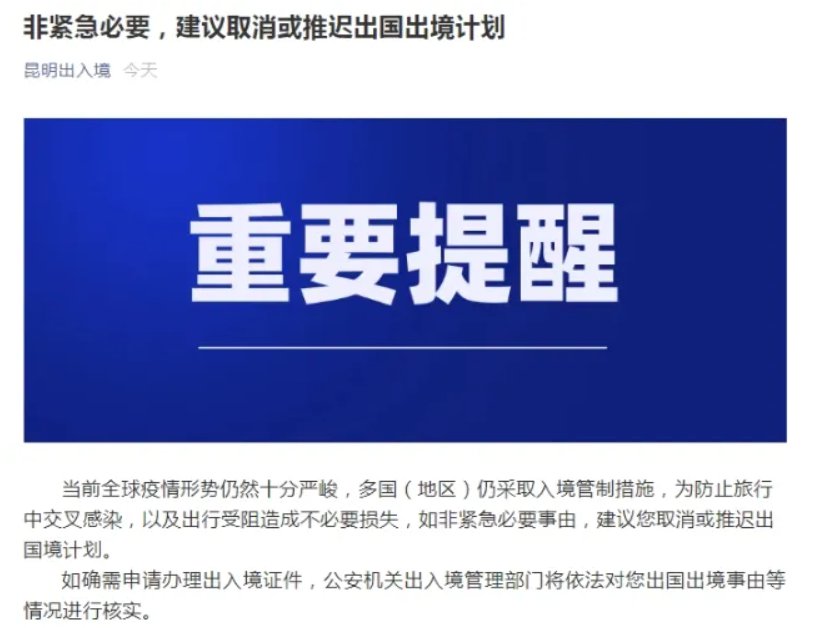 當(dāng)前全球疫情形勢仍然十分嚴(yán)峻,多國(地區(qū))仍采取入境管制措施,為防止旅行中交叉感染,以及出行受阻造成不必要損失,如非緊急必要事由,建議您取消或推遲出國境計劃。
