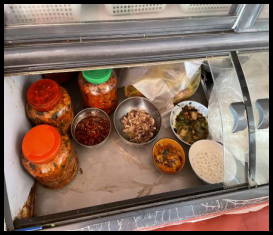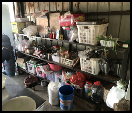 4、儲(chǔ)藏區(qū)物品雜亂,柜內(nèi)肉食裸露存放,衛(wèi)生條件差。