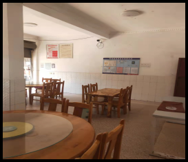 1、就餐區(qū)桌面、桌椅、墻面、地面清潔,門窗潔凈明亮,就餐場(chǎng)所整潔。