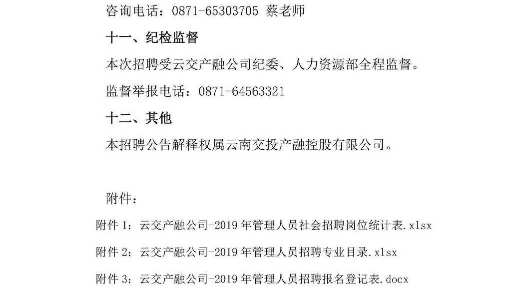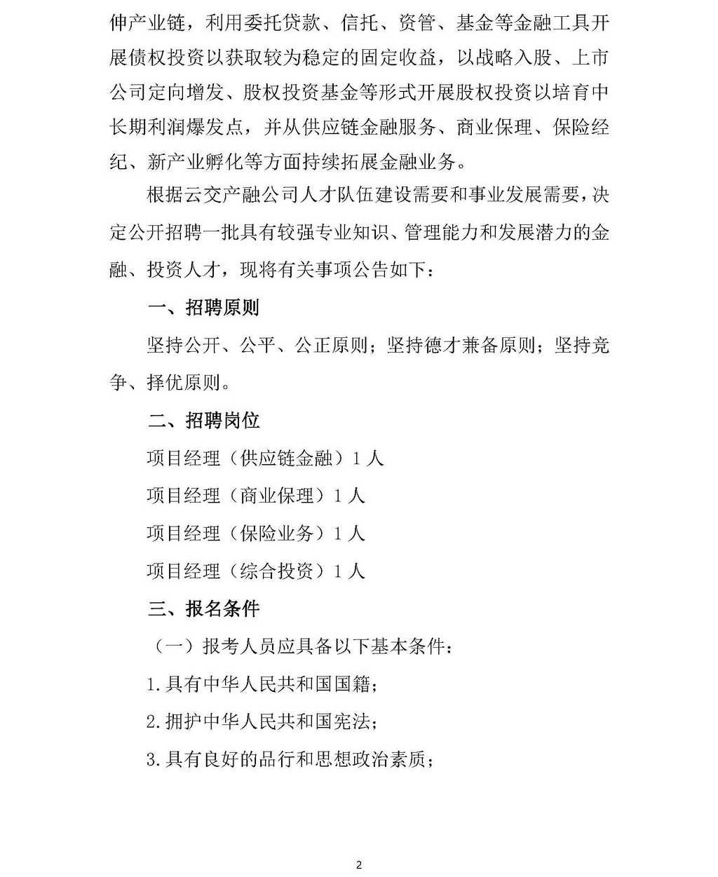 云南交投產(chǎn)融控股有限公司2019年下半年管理人員社會招聘公告