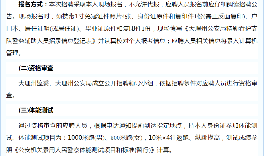 大理州公安局關(guān)于公開招聘特勤看護支隊警務(wù)輔助人員的公告