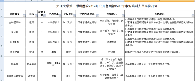 大理大學(xué)第一附屬醫(yī)院急招29名非事業(yè)編制工作人員